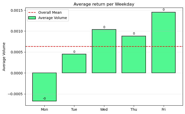 \[\text{Return}_t = \beta_0 + \beta_1 \,\mathbb{1}_{\text{Calendar Effect}_t} + \beta_2 \,\text{Volatility}_t + \beta_3 \,\text{Volume}_t + \varepsilon_t\]and