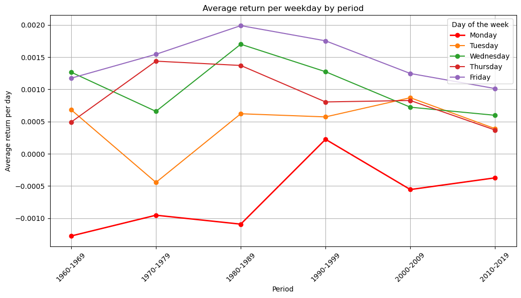 - Across decades: Is the effect real?Does each day of the week have an impact on the return?